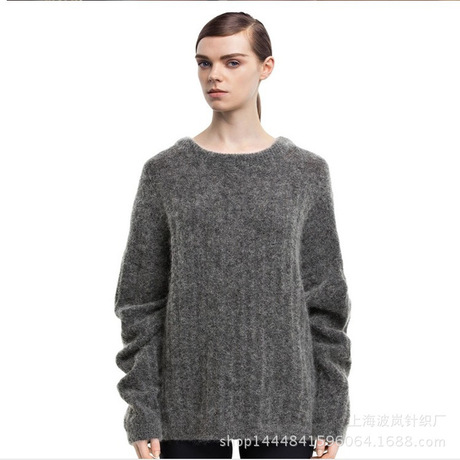 新款楊冪同款寬松套頭毛衣圓領(lǐng)羊毛針織衫馬海毛女式毛衣 /