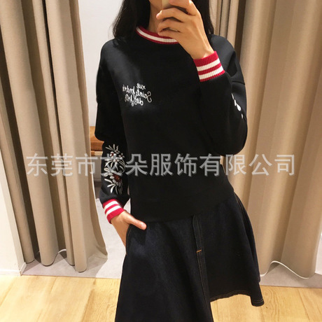 歐洲站法國秋冬新款百搭精致繡花寬松撞色太空棉套頭衛(wèi)衣女 /