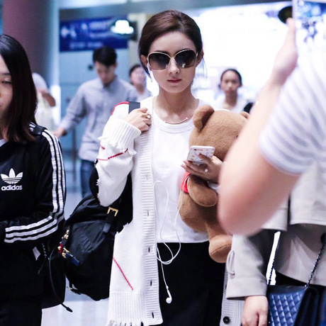 秋冬趙麗穎機(jī)場同款毛衣拼接下擺流蘇開衫中長款針織外套女 /