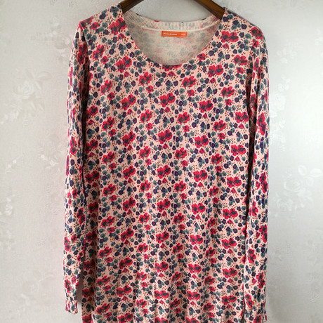 國(guó)內(nèi)專(zhuān)柜尾單春秋女裝棉印花中長(zhǎng)款圓領(lǐng)針織打底衫套頭毛線衣 /
