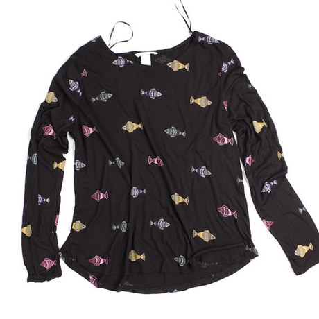 原單莫代爾長(zhǎng)袖女T恤彩色魚(yú)印花女士上衣打底衫體恤一件代發(fā) /