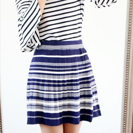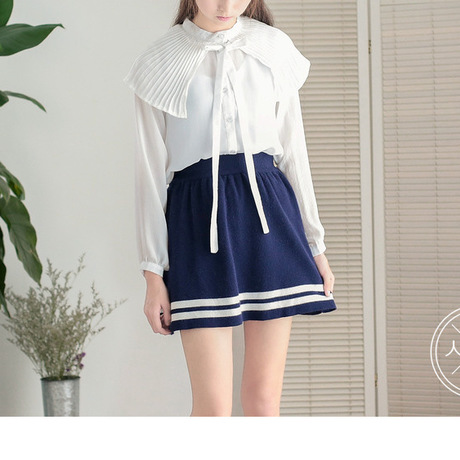 日系可愛(ài)條紋針織裙子學(xué)院女 /