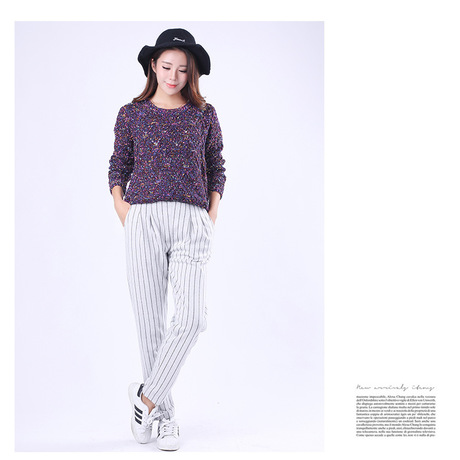 韓版時(shí)尚百搭經(jīng)典菱格紋清新彩點(diǎn)鏤空花色套頭長(zhǎng)袖毛衣 /