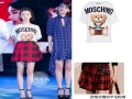 七月與安生周冬雨同款白色小熊T恤女+蘇格蘭紅色格子半裙套裝女潮 /