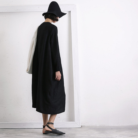 模樣出品 原創(chuàng)設(shè)計(jì)師品牌寬松獨(dú)特風(fēng)格文藝口袋設(shè)計(jì)長(zhǎng)袖連衣裙 /