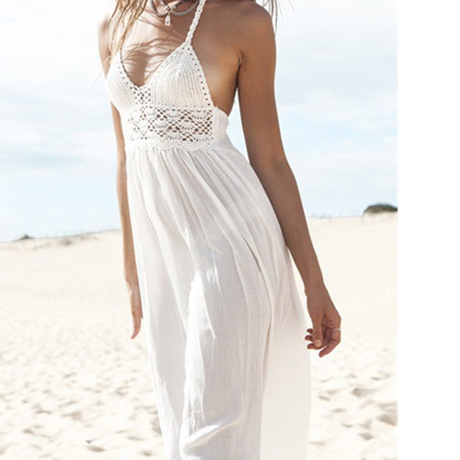 新款夏天吊帶V領(lǐng)繃帶無袖性感連衣長裙批發(fā) 鏤空鉤花裙 /