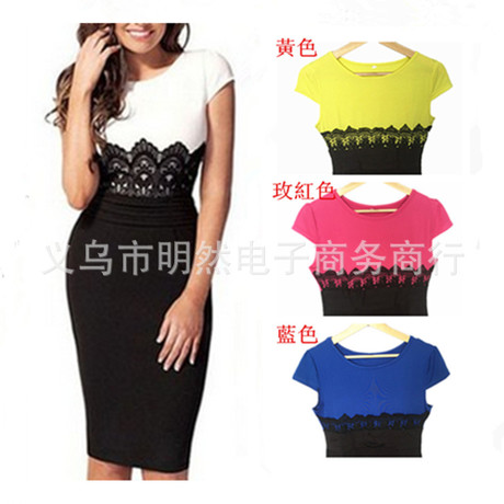 速賣通熱賣夏季歐美性感蕾絲連衣裙歐洲站外貿(mào)修身短袖包臀裙子 /