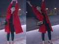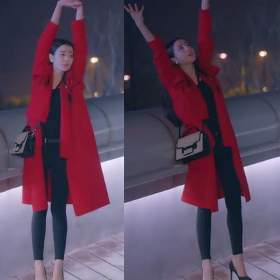 秋冬唐嫣高雯迪麗熱巴同款紅色長款羊絨呢子大衣外套現(xiàn)貨 /