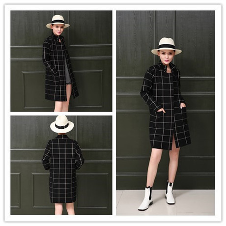 秋冬新款加厚毛衣女羊毛衫中長款寬松大碼針織開衫格子大衣外套 /