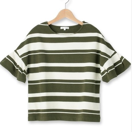 外貿(mào)日系原單3can4on條紋花邊袖美衫 /