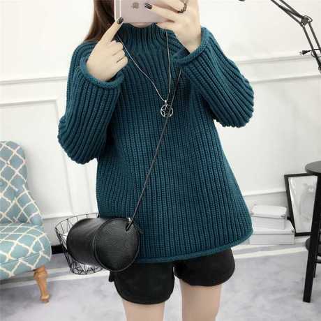 秋冬新款寬松毛衣短款半高領加厚女裝針織衫卷邊學院風潮人 /