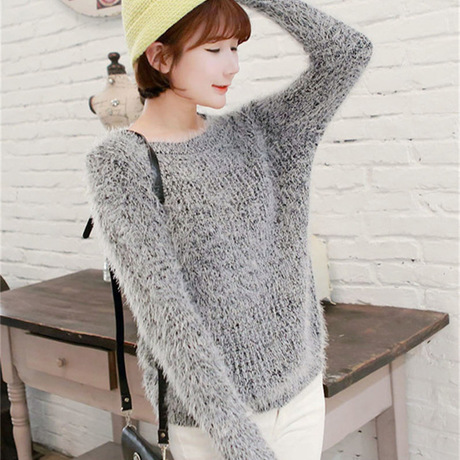 秋冬裝新品韓版套頭學院風馬海毛毛衣女針織衫女式羊毛衫套衫 /