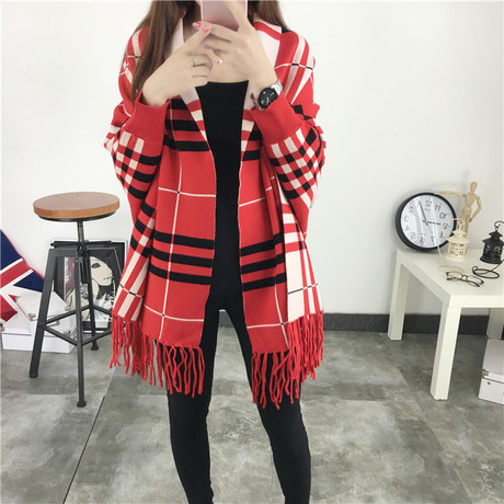 秋冬季新款女裝針織衫 韓版中長款條紋流蘇披肩開衫外套女 /