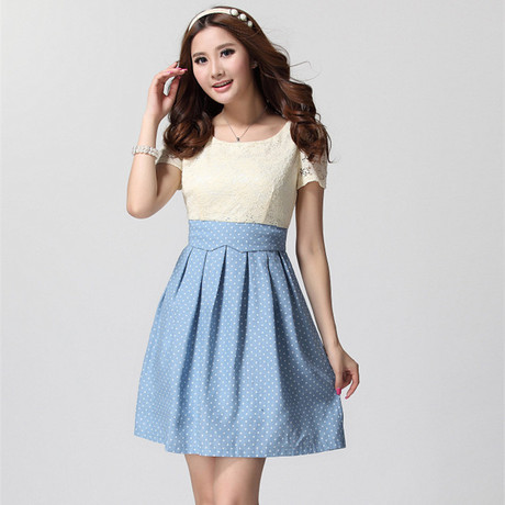 大碼女裝時裝服裝貨源批發(fā)夏裝蕾絲牛仔棉短袖連衣裙一件代發(fā)網(wǎng)店 /