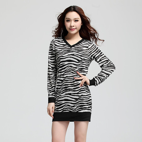 大碼女裝服裝批發(fā)代理休閑豹紋印花長袖連衣裙一件代發(fā)18943 /
