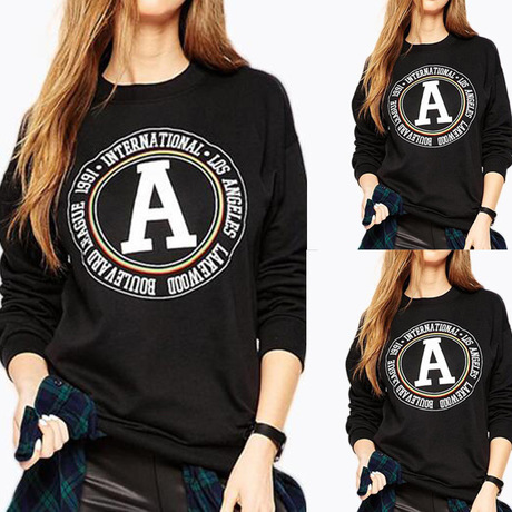 露噠娜女裝歐美熱銷圓領(lǐng)長袖字母印花百搭休閑衛(wèi)衣女 /
