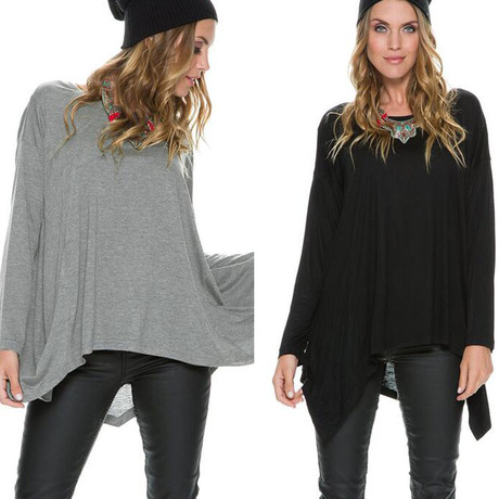 露噠娜女裝歐美個(gè)性不規(guī)則下擺上衣寬松圓領(lǐng)長袖T恤女 /