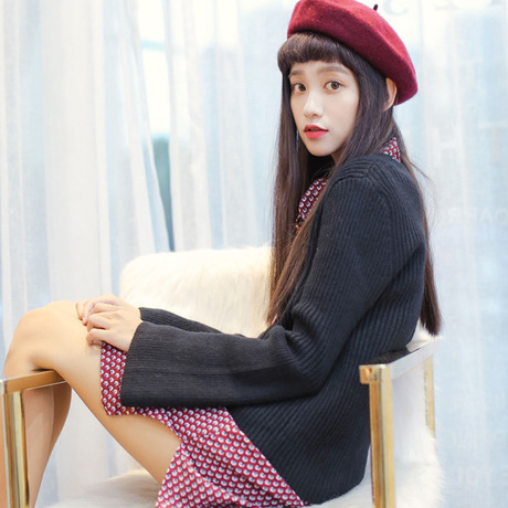 秋季新款純色顯瘦套頭毛衣女韓版長袖百搭外套上衣一件代發(fā) /