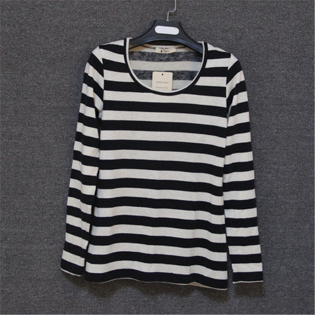 實(shí)拍秋裝新款韓版女裝長(zhǎng)袖T恤圓領(lǐng)條紋打底衫上衣 /