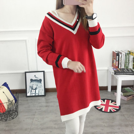 V領套頭毛衣女秋冬秋裝新款春秋季外套上衣女裝潮學院風學生 /