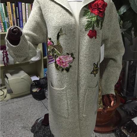 廠家最新韓版帶帽子寬松直身刺繡開衫外套女裝 /