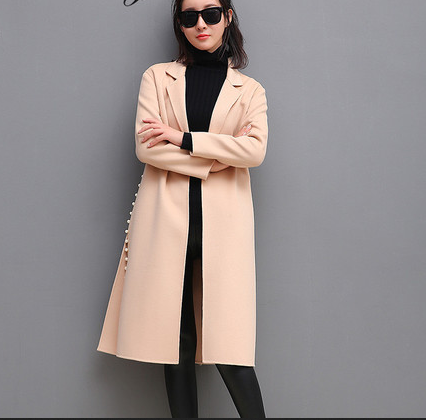純色時尚西裝領(lǐng)長袖氣質(zhì)修身手工雙面呢羊毛大衣 韓版釘珠女裝潮 /