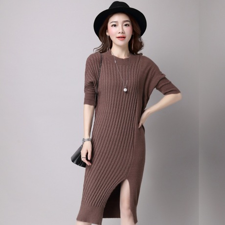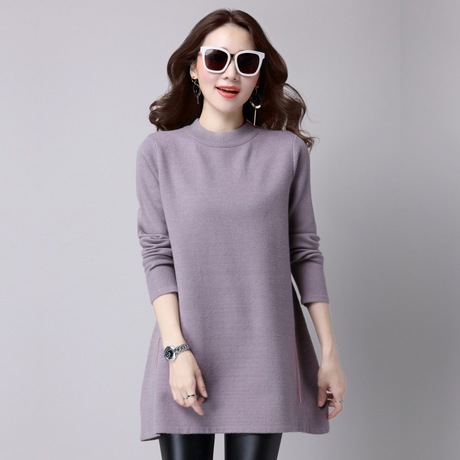 秋冬款女式針織衫 長袖圓領(lǐng)寬松套頭中長款針織上衣廠家直銷 /