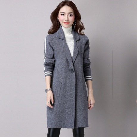 秋冬新款韓版純色女式針織外套 長袖翻領(lǐng)長款寬松大衣女批發(fā) /