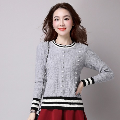 廠家直銷秋季新款甜美風女式針織上衣 圓領(lǐng)修身釘珠裝飾女裝 /