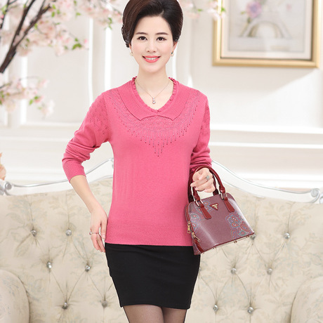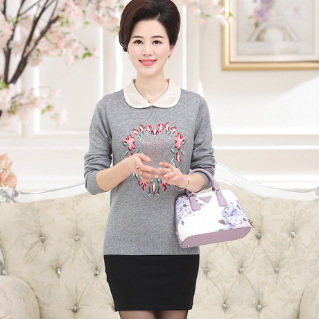 秋冬女式中老年媽媽裝針織衫毛衣時(shí)尚印花套頭長(zhǎng)袖女裝打底衫 /
