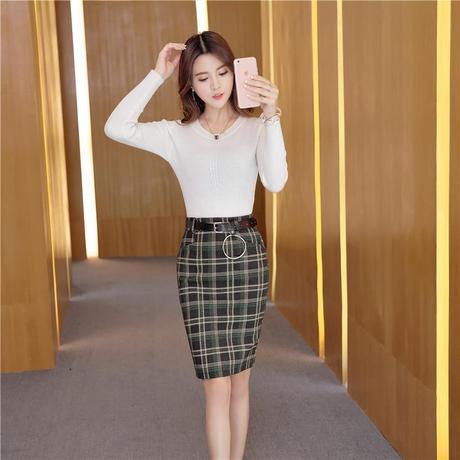 秋季新款格子高腰后開叉包臀裙中裙毛呢妮子裙送皮帶一件代發(fā) /