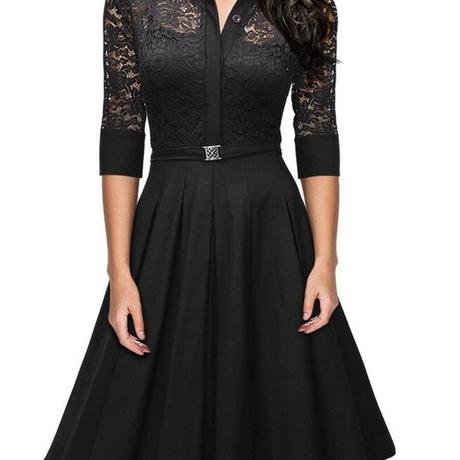 新款歐美女裝修身蕾絲連衣裙七分袖大擺裙外貿(mào)批發(fā) /