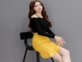 韓版女裝秋季新款套裝性感一字領(lǐng)長(zhǎng)袖針織衫+荷葉中裙兩件套 /