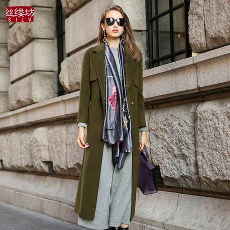 專柜正品雙面羊絨毛呢大衣女風衣 女秋新款腰帶廓形加長款 /