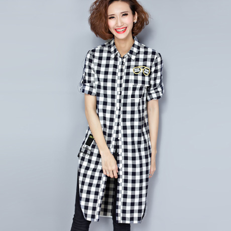 ZC秋季新款韓版女裝襯衫 長(zhǎng)袖棉質(zhì)格子紋寬松修身開身女上衣 /