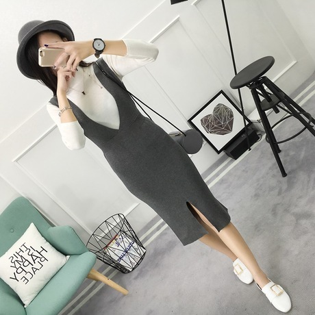 • 秋季 背帶裙中長(zhǎng)款毛衣針織連衣裙 毛線背心裙 /