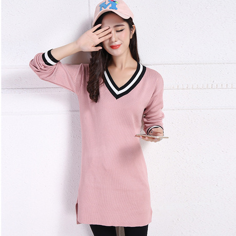 • 實(shí)拍 秋季大碼女裝長(zhǎng)袖V領(lǐng)外套女士針織衫套頭打底衫毛衣裙中長(zhǎng)款 /