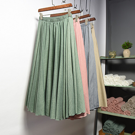 女裝韓版復(fù)古高腰秋棉麻大擺裙半身長裙秋冬a字裙蓬蓬裙 /
