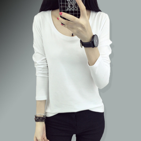 純色長袖t恤修身秋季打底衫女百搭新款女士上衣體恤韓版純色t恤 /