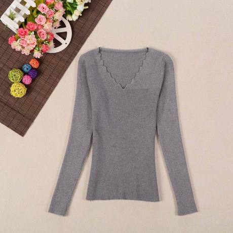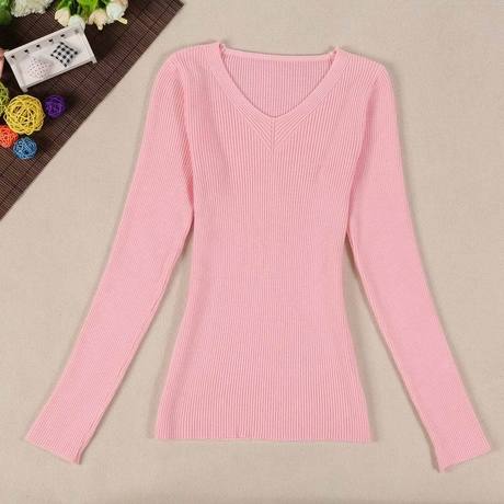秋新款女裝長袖V領(lǐng)毛衣純色超彈針織打底衫T桖廠家一件代發(fā) /