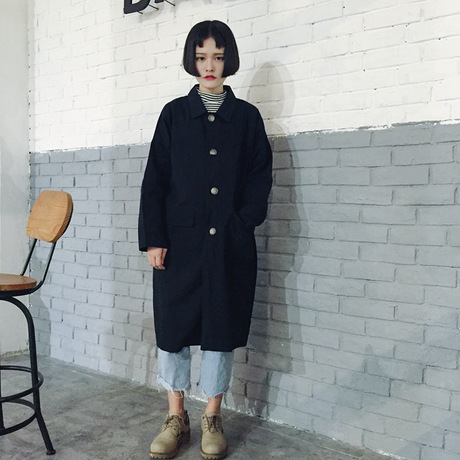 韓版新款時(shí)尚百搭酷酷隨性休閑翻領(lǐng)風(fēng)衣薄外套【實(shí)拍】 /