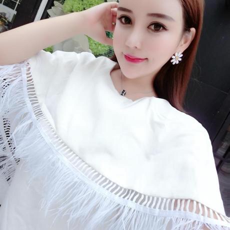 秋裝新款名媛氣質(zhì)斗篷披肩羽毛包臀修身顯瘦白色短裙連衣裙女 /