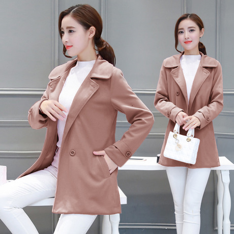 春秋新款修身女裝雙排扣中長款羊毛呢子大衣風衣外套 潮款 /