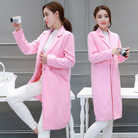 秋冬韓版新款雙面呢中長款呢子大衣秋冬精品女裝毛呢子外套女 /
