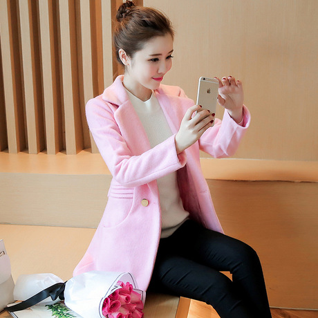 秋冬新款純色加厚毛呢外套中長款顯瘦羊毛呢子大衣外套東大門 /