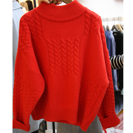 韓國(guó)東大門冬新款女裝立領(lǐng)毛衣 重工麻花半高領(lǐng)套頭加厚打底毛衫 /