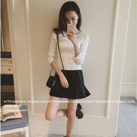 速賣通爆款 秋冬新款 前后V領(lǐng)豎紋修身顯瘦套頭針織衫 打底衫 /