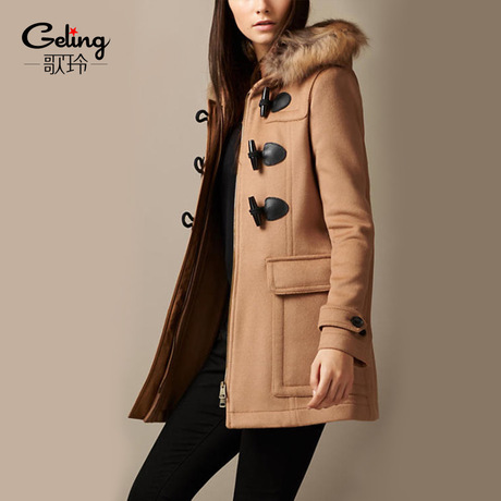 歐美秋冬中長款雙面羊絨大衣女 高端連帽毛呢外套女連帽2016批發(fā) /