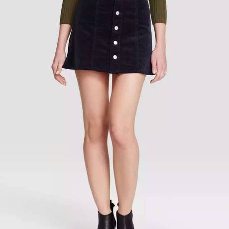歐美秋冬新款復(fù)古收腰燈芯絨顯瘦A字mini裙半身裙短裙女 /