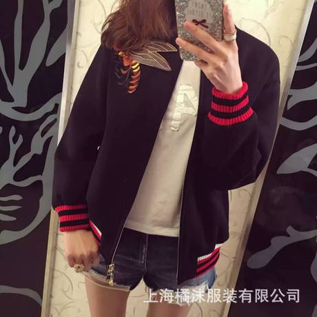 歐洲站秋冬新款G家重工蜜蜂刺繡衛(wèi)衣棒球服女夾克外套 /